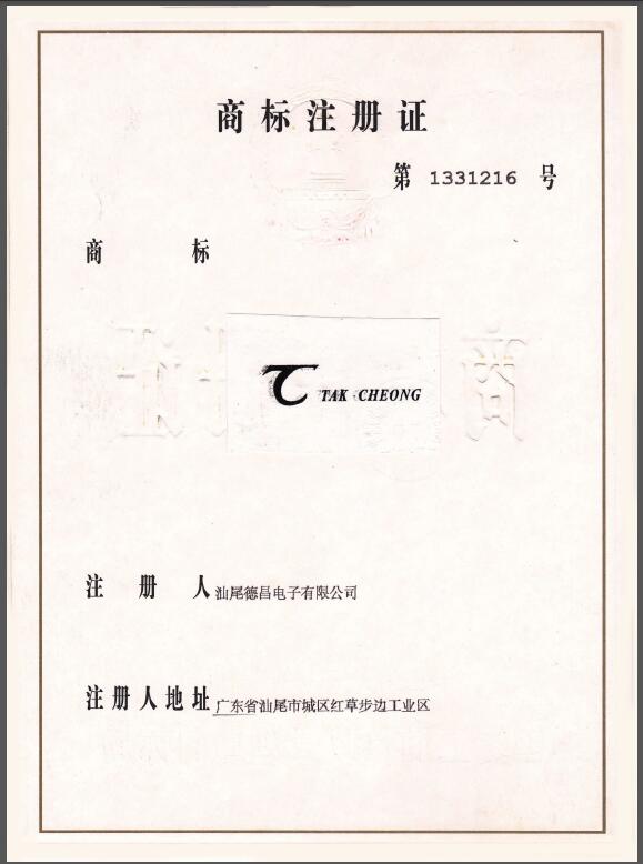 是汕尾德昌電子有限公司在中國的注冊商標(biāo)之一,受法律保護,侵權(quán)必究。