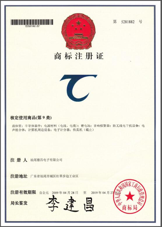 是汕尾德昌電子有限公司在中國(guó)的注冊(cè)商標(biāo)之一,受法律保護(hù),侵權(quán)必究。 未經(jīng)汕尾德昌電子有限公司書(shū)面許可,任何單位和個(gè)人不得以任何方式或理由對(duì)該商標(biāo)